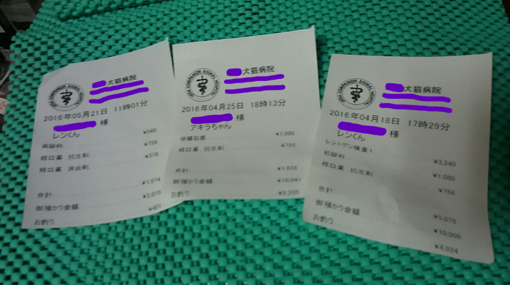 これは何かと申しますと動物病院のレシートです。
